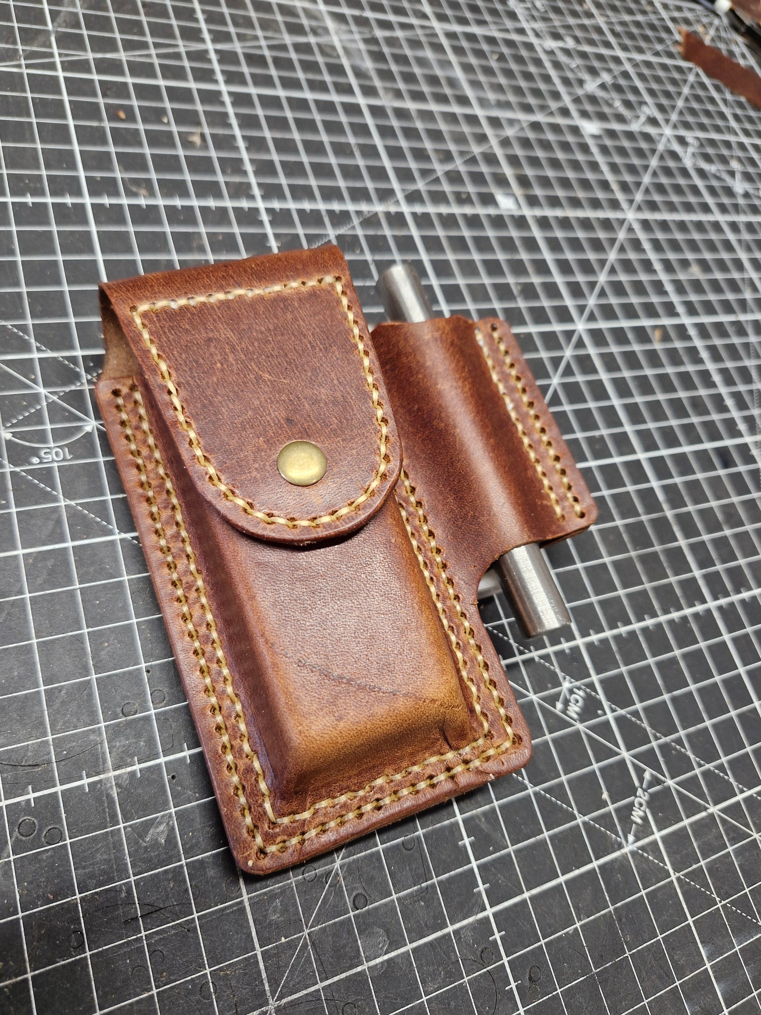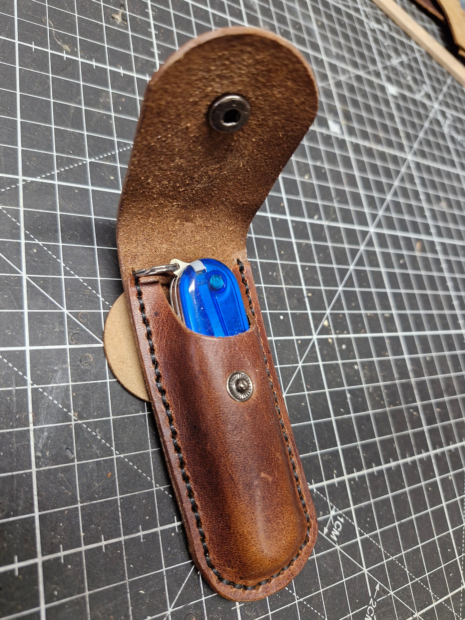 Een uitdaging. Mijn neefje zijn eerste mes gegeven. Daarbij hoort een goede veilige hoes. Met clip zodat hij het goed kan ophangen en bewaren.