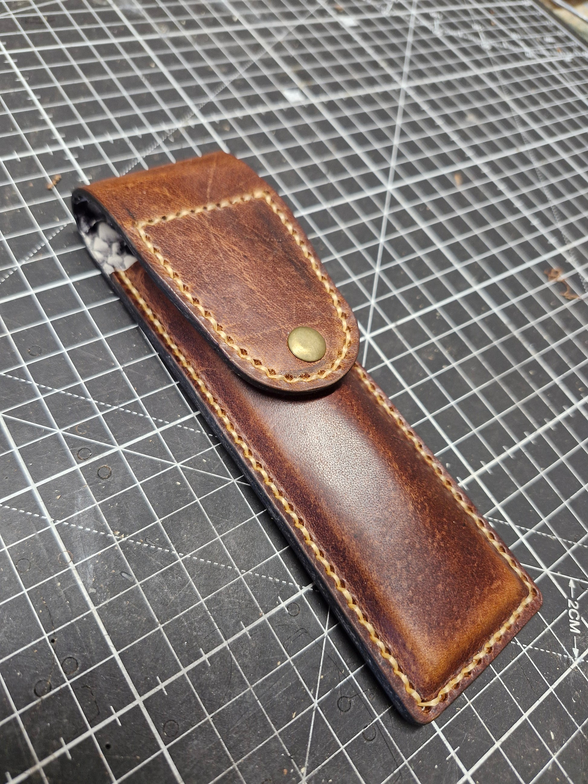 Etui voor twee pennen met slangpatroon. Wil je stijlvol je pennen opbergen, dan is dit de etui voor jou. Mooi leer met een licht oranje stiksel en slangenhuispatroon.